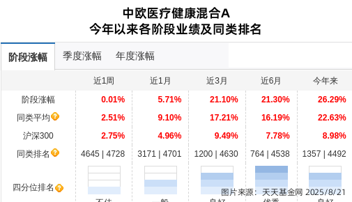 财报显示,中欧基金旗下中欧医疗健康混合A进入博腾股份前十大股东,且为今年二季度新进。今年以来收益率26.29%,同类排名1357(总4492)。